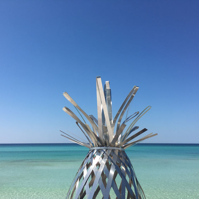 In 2017, the nation's first Underwater Museum of Art was created and submissions were being accepted. Again with the love of working with her hands, Rachel had gotten her dad to give her welding lessons many years prior. With his resources, she knew she could create something for the museum. After coming up with a concept, Rachel was one of the seven artists chosen for her sculpture design, The Grayt Pineapple, an 8ft stainless steel pineapple. In 2018, it was placed off the coast of Grayton Beach, FL. In 2019, she was accepted again with her creation Let's Flamingle, a concrete and stainless steel sculpture.